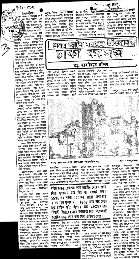 প্রথম আশি বছরের ইতিহাস ঢাকা কলেজ Published on Newspaper দৈনিক বাংলা Category Professional Education Professional Education Medical Download