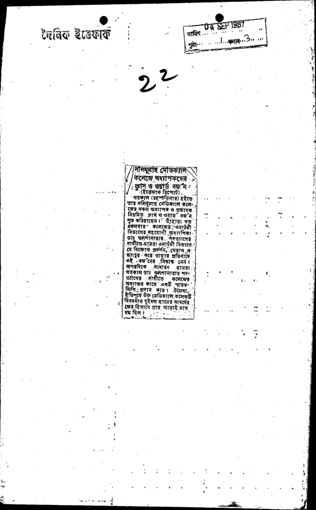 সলিমুল্লাহ মেডিক্যাল কলেজ অধ্যাপকদের ক্লাস ও ওয়ার্ড বজর্ন Published on Newspaper দৈনিক ইত্তেফাক Category Professional Education Professional Education Medical Download