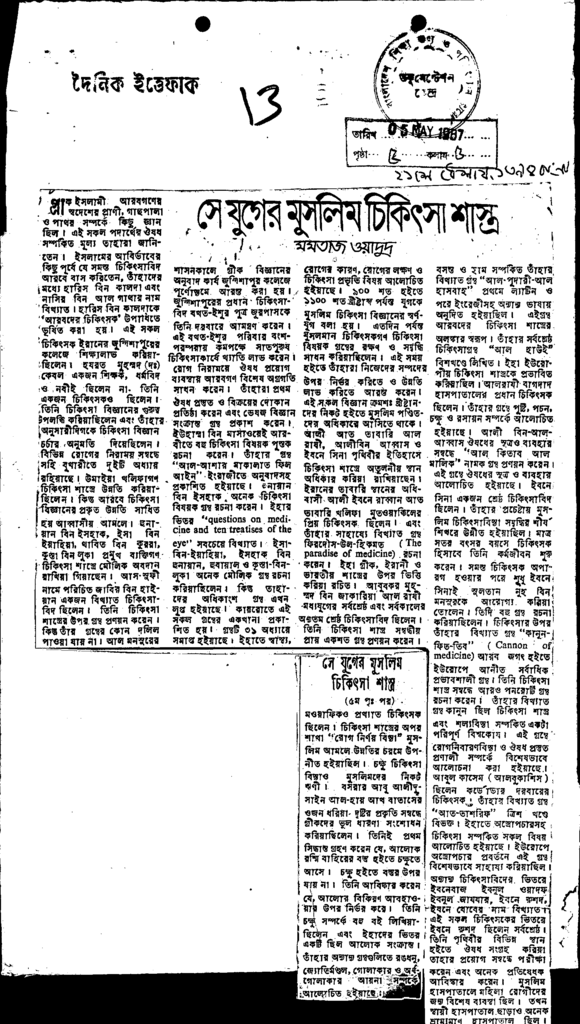 সে যুগের মুসলিম চিকিৎসা শাস্ত্র Published on Newspaper দৈনিক ইত্তেফাক Category Professional Education Professional Education Medical Download
