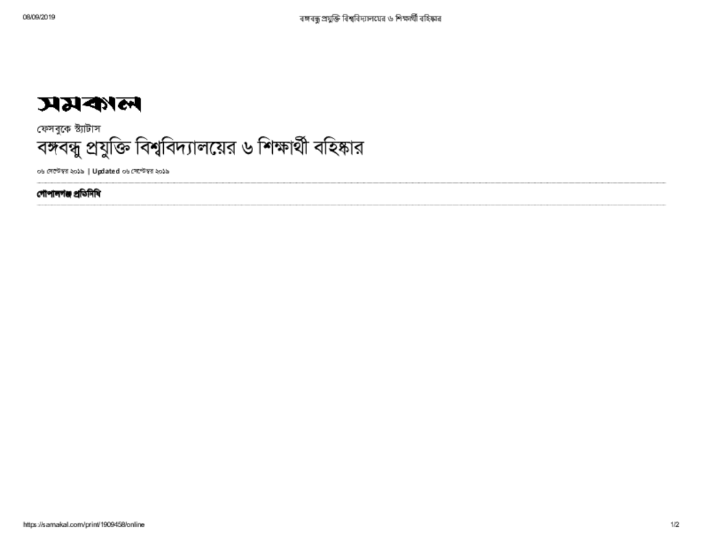 বঙ্গবন্ধু প্রযুক্তি বিশ্ববিদ্যালয়ের ৬ শিক্ষার্থী বহিষ্কার