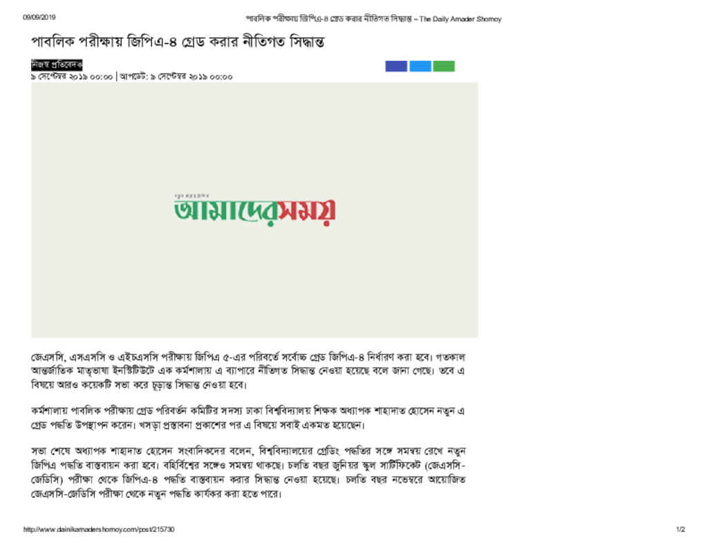 পাবলিক পরীক্ষায় জিপিএ-৪ গ্রেড করার নীতিগত সিদ্ধান্ত – The Daily Amader Shomoy Published on Newspaper দৈনিক আমাদের সময় Category Educational Ministry / Departments Download