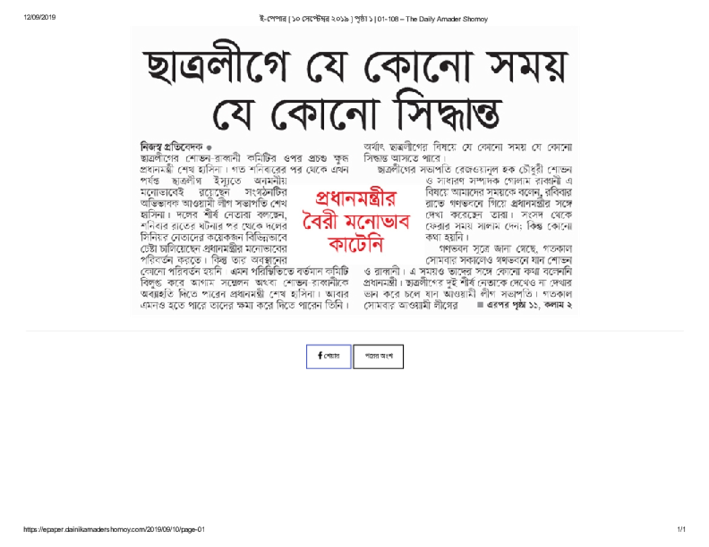 ছাত্রলীগে যে কোনো সময় যে কোনো সিদ্ধান্ত ১ Published on Newspaper দৈনিক আমাদের সময় Category Student Politics Download