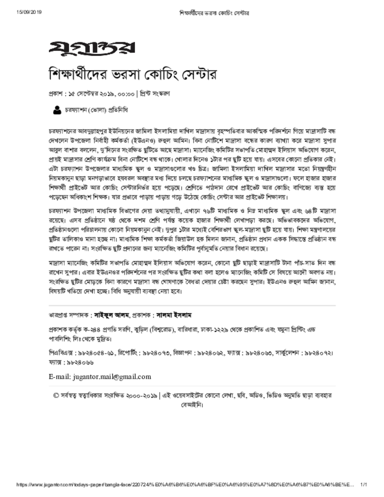 শিক্ষার্থীদের ভরসা কোচিং সেন্টার Published on Newspaper দৈনিক যুগান্তর Category Madrasah Education Madrasah Education Alia Download