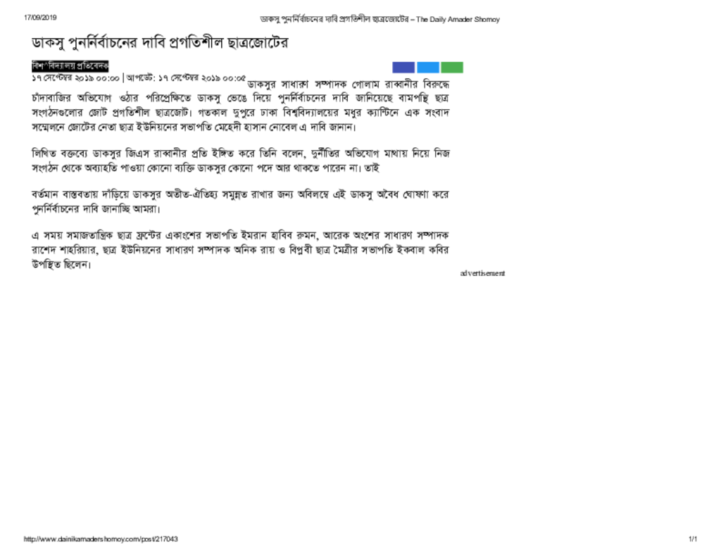 ডাকসু পুনর্নির্বাচনের দাবি প্রগতিশীল ছাত্রজোটের – The Daily Amader Shomoy