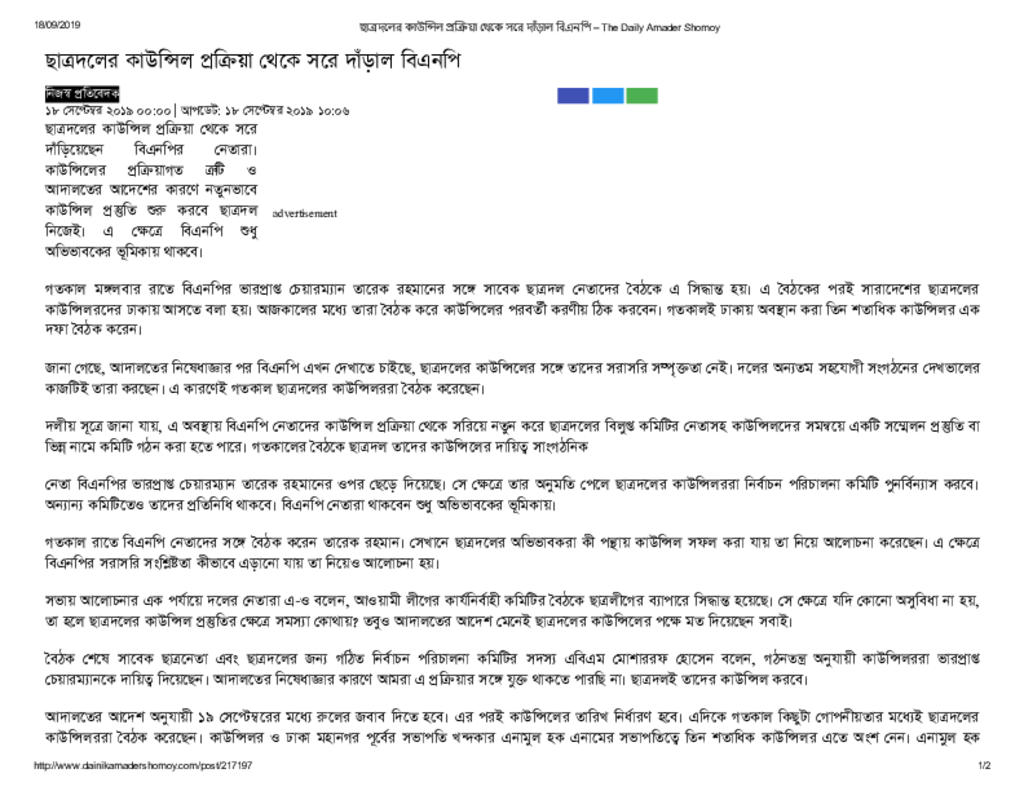 ছাত্রদলের কাউন্সিল প্রক্রিয়া থেকে সরে দাঁড়াল বিএনপি – The Daily Amader Shomoy Published on Newspaper দৈনিক আমাদের সময় Category Student Politics Download