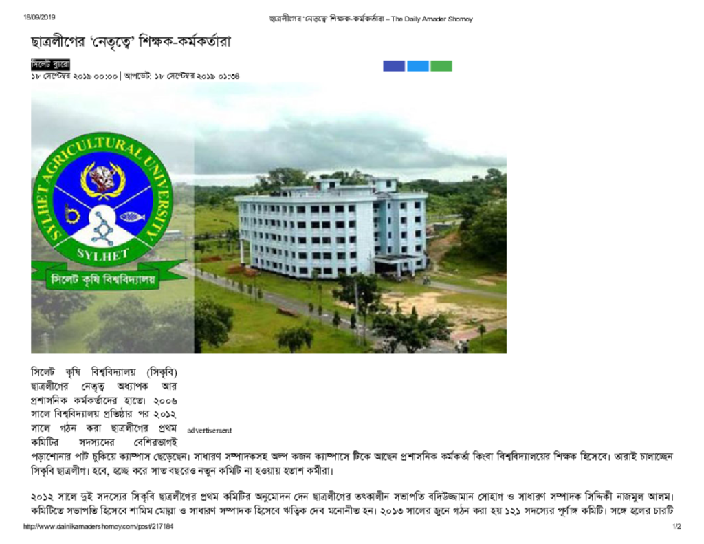 ছাত্রলীগের ‘নেতৃত্বে’ শিক্ষক-কর্মকর্তারা – The Daily Amader Shomoy Published on Newspaper দৈনিক আমাদের সময় Category Student Politics Download