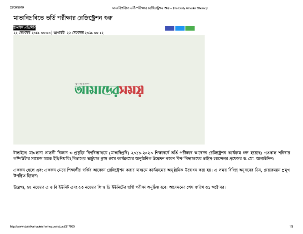 মাভাবিপ্রবিতে ভর্তি পরীক্ষার রেজিস্ট্রেশন শুরু – The Daily Amader Shomoy Published on Newspaper দৈনিক আমাদের সময় Category Admission / Seat Problem Admission/Seat Problem Download
