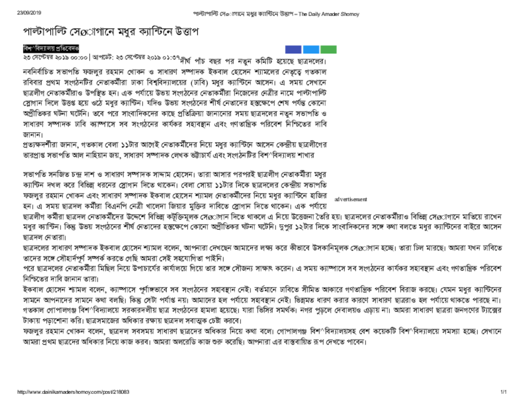 পাল্টাপাল্টি সেøাগানে মধুর ক্যান্টিনে উত্তাপ – The Daily Amader Shomoy Published on Newspaper দৈনিক আমাদের সময় Category Student Politics Download