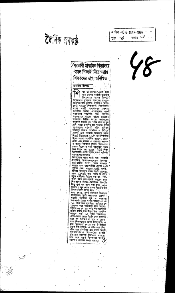 সরকারী মাধ্যমিক বিদ্যালয়ে ‘ডবল শিফটে’ নিয়োগপ্রাপ্ত শিক্ষকদের ভাগ্য অনিশ্চিত