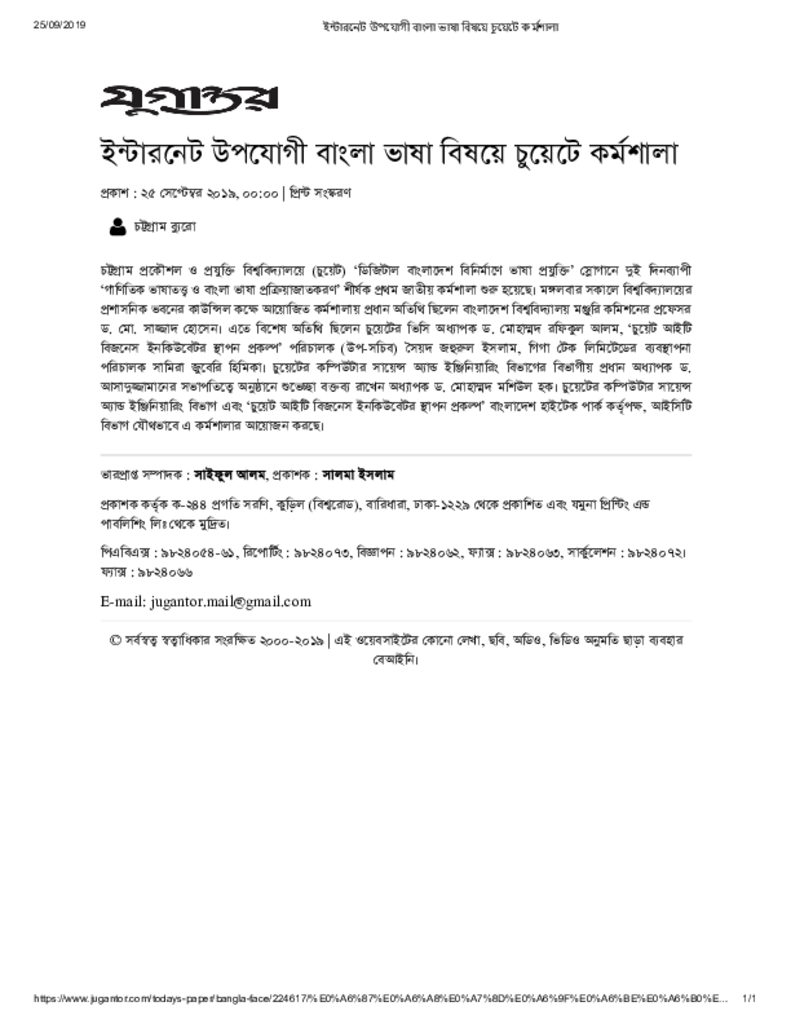 ইন্টারনেট উপযোগী বাংলা ভাষা বিষয়ে চুয়েটে কর্মশালা