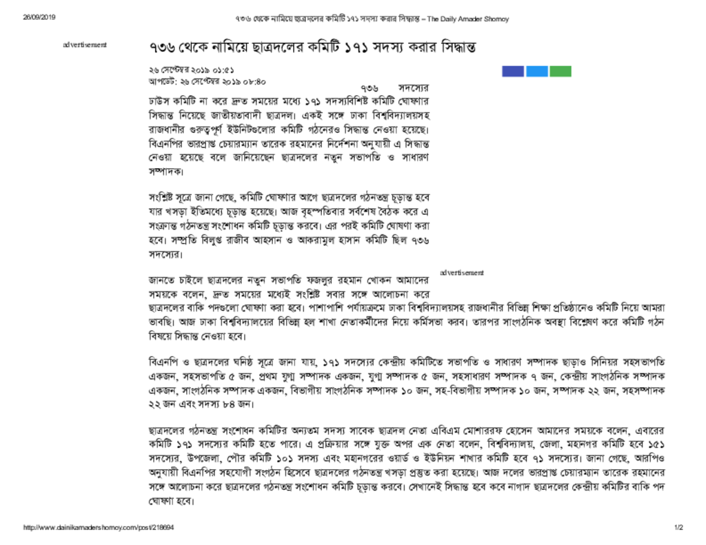 ৭৩৬ থেকে নামিয়ে ছাত্রদলের কমিটি ১৭১ সদস্য করার সিদ্ধান্ত – The Daily Amader Shomoy