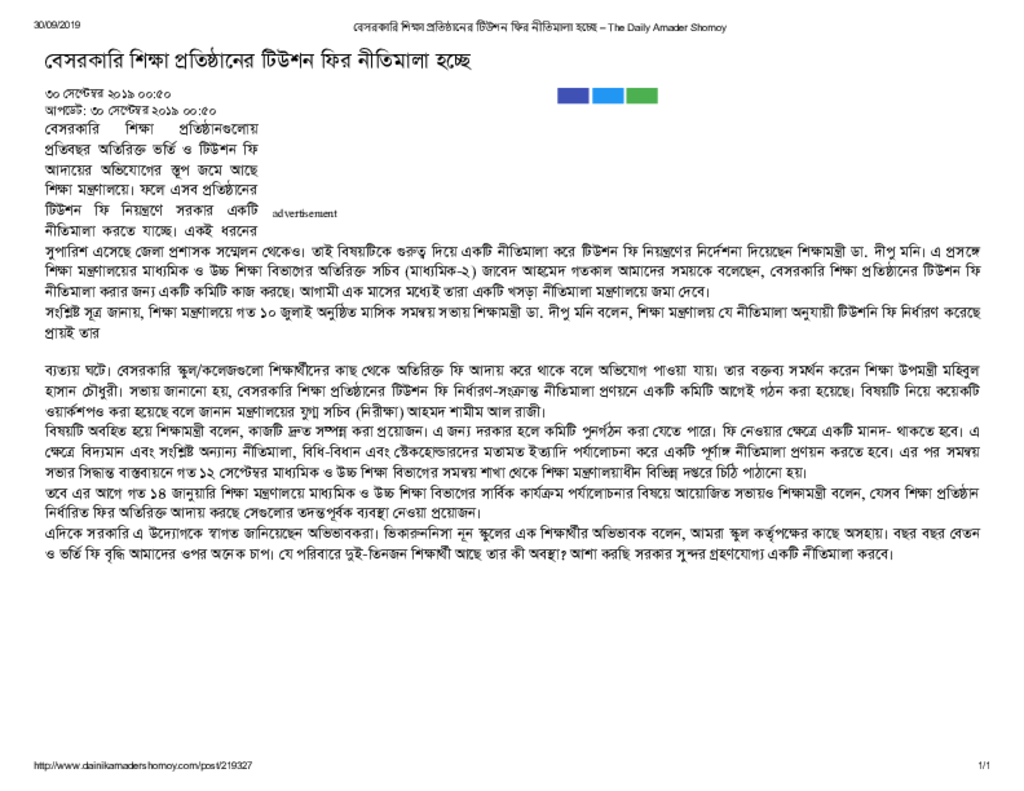 বেসরকারি শিক্ষা প্রতিষ্ঠানের টিউশন ফির নীতিমালা হচ্ছে – The Daily Amader Shomoy