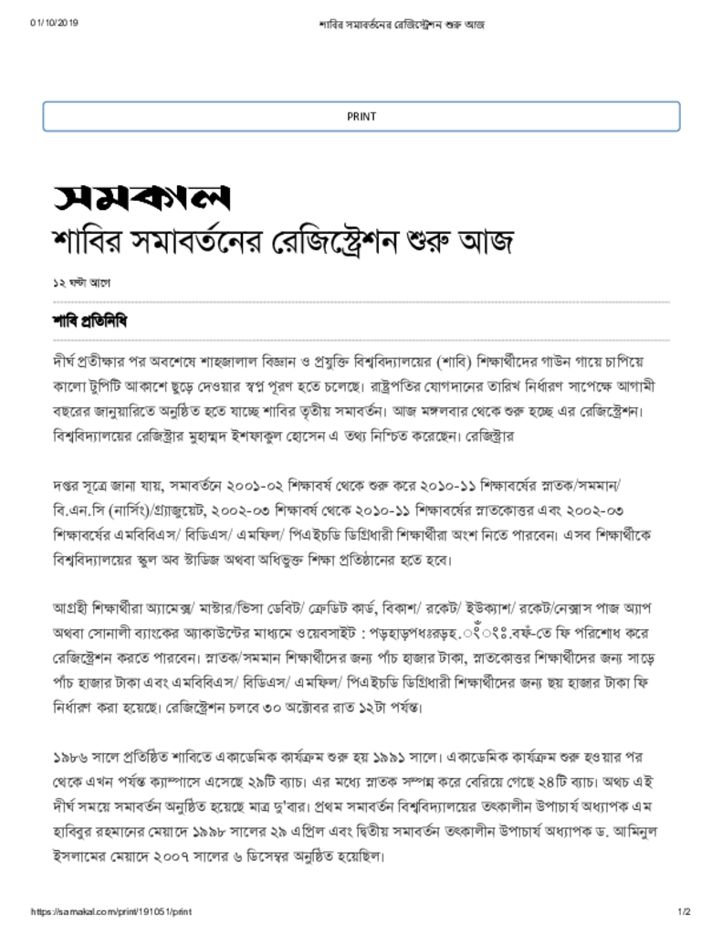 শাবির সমাবর্তনের রেজিস্ট্রেশন শুরু আজ Published on Newspaper দৈনিক সমকাল Category Science Education Download