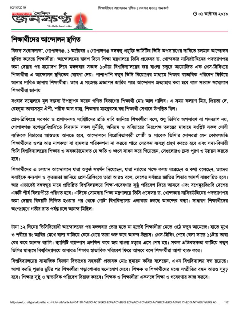 শিক্ষার্থীদের আন্দোলন স্থগিত __ দেশের খবর __ জনকন্ঠ Published on Newspaper দৈনিক জনকণ্ঠ Category Science Education Download