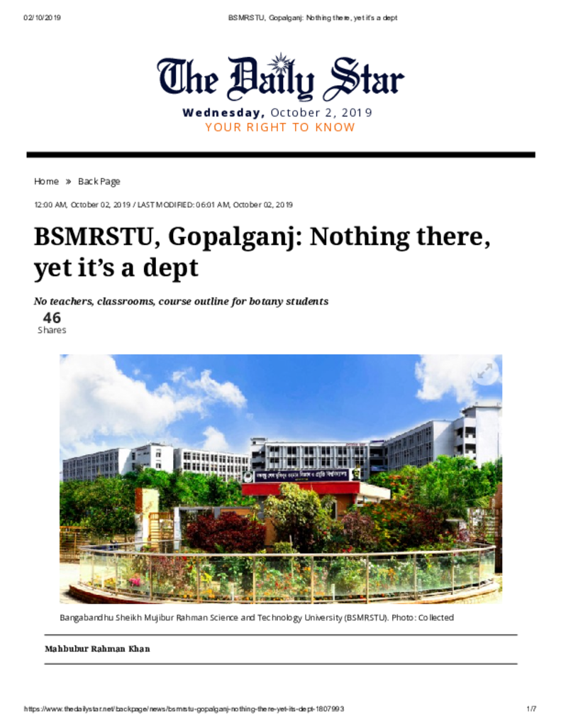 BSMRSTU, Gopalganj_ Nothing there, yet it’s a dept Published on Newspaper The Daily Star Category Science Education Download