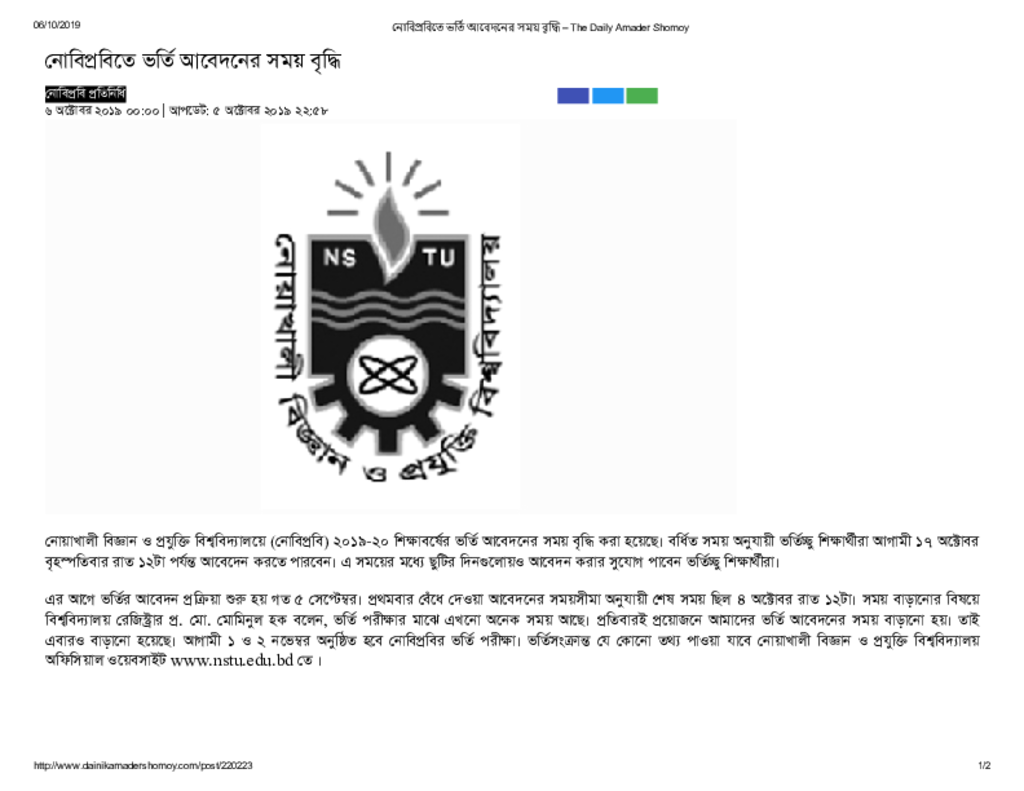 নোবিপ্রবিতে ভর্তি আবেদনের সময় বৃদ্ধি – The Daily Amader Shomoy