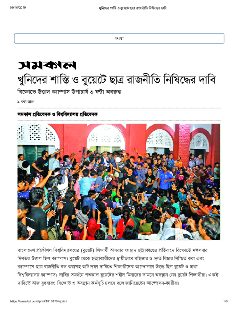 খুনিদের শাস্তি ও বুয়েটে ছাত্র রাজনীতি নিষিদ্ধের দাবি Published on Newspaper দৈনিক সমকাল Category Professional Education Professional Education Engineering Download