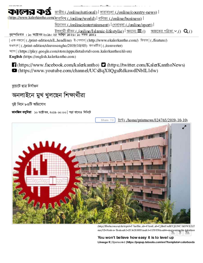 বুয়েটে ছাত্র নির্যাতন Published on Newspaper দৈনিক কালের কন্ঠ Category Professional Education Professional Education Engineering Download
