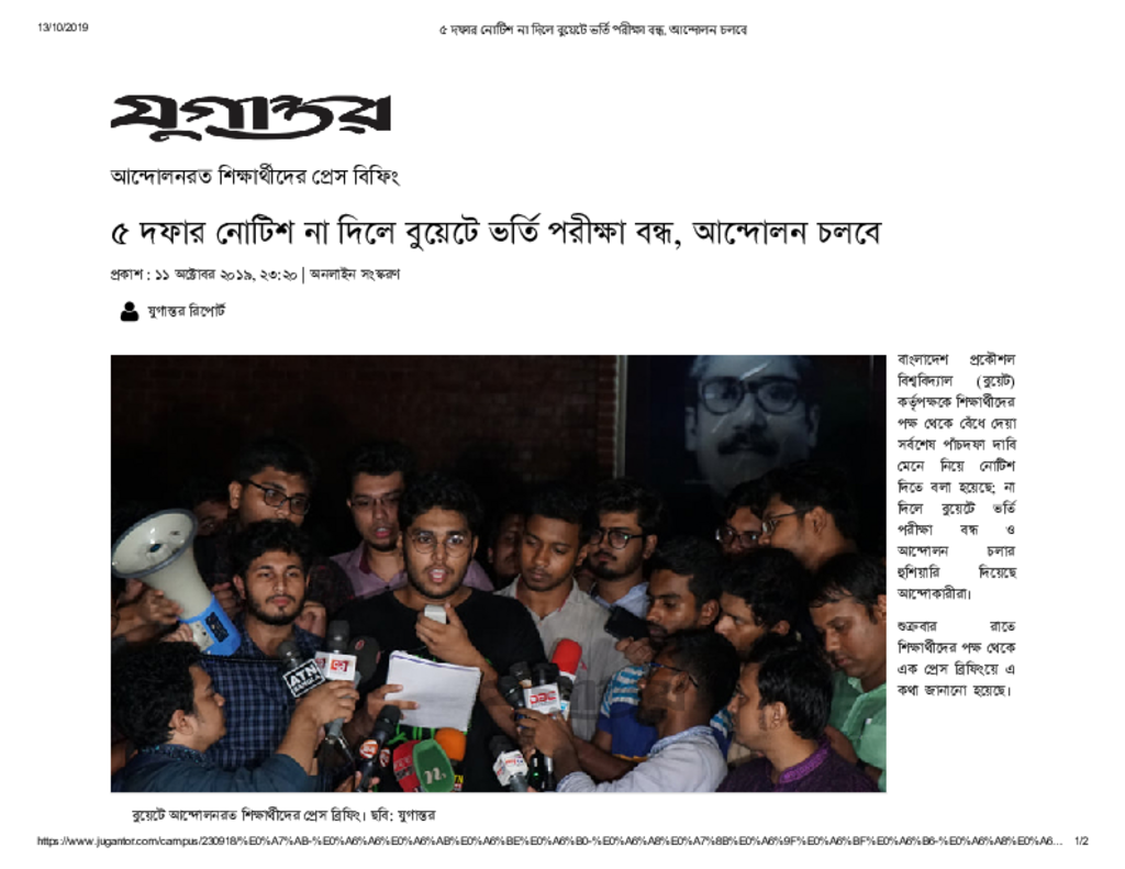 ৫ দফার নোটিশ না দিলে বুয়েটে ভর্তি পরীক্ষা বন্ধ, আন্দোলন চলবে Published on Newspaper দৈনিক সংবাদ Category Professional Education Professional Education Engineering Download
