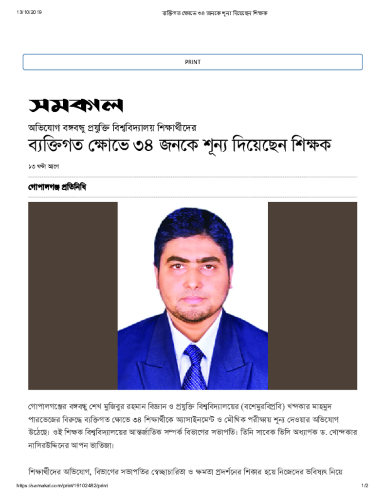 ব্যক্তিগত ক্ষোভে ৩৪ জনকে শূন্য দিয়েছেন শিক্ষক