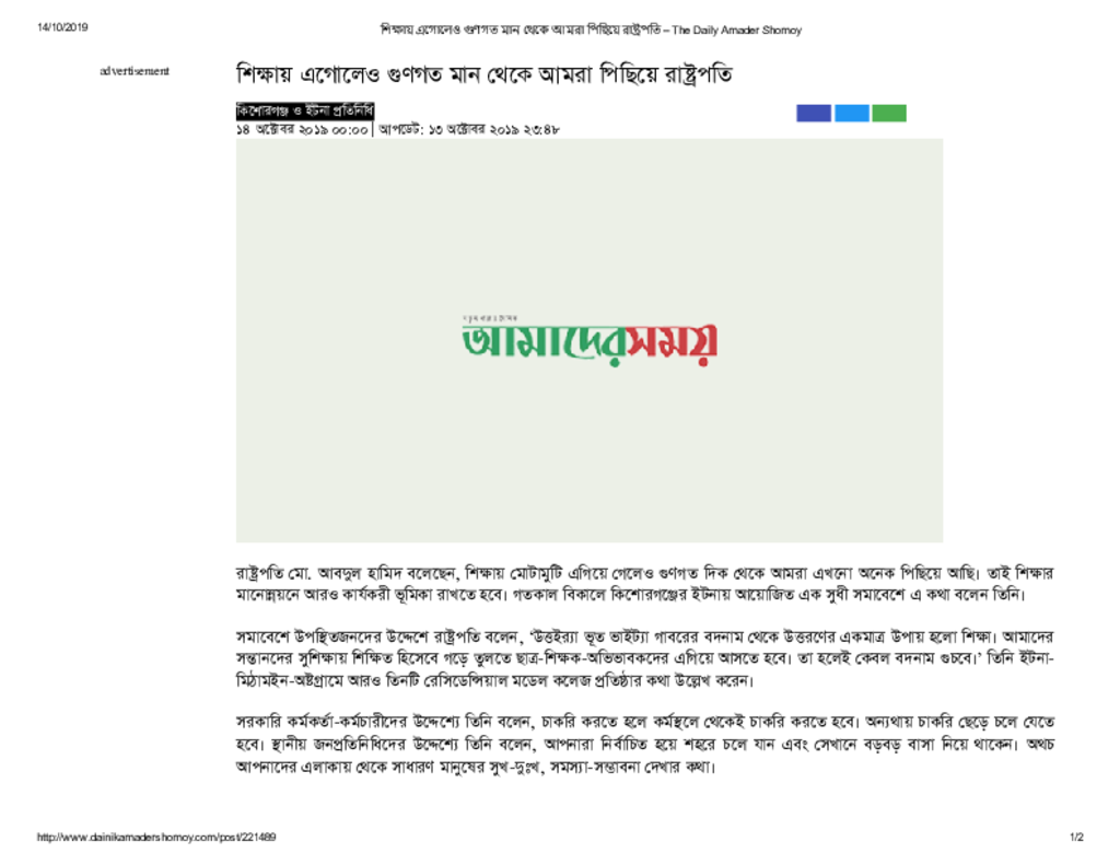 শিক্ষায় এগোলেও গুণগত মান থেকে আমরা পিছিয়ে রাষ্ট্রপতি – The Daily Amader Shomoy Published on Newspaper দৈনিক আমাদের সময় Category Personal Opinion / Discussion / Commentary Download