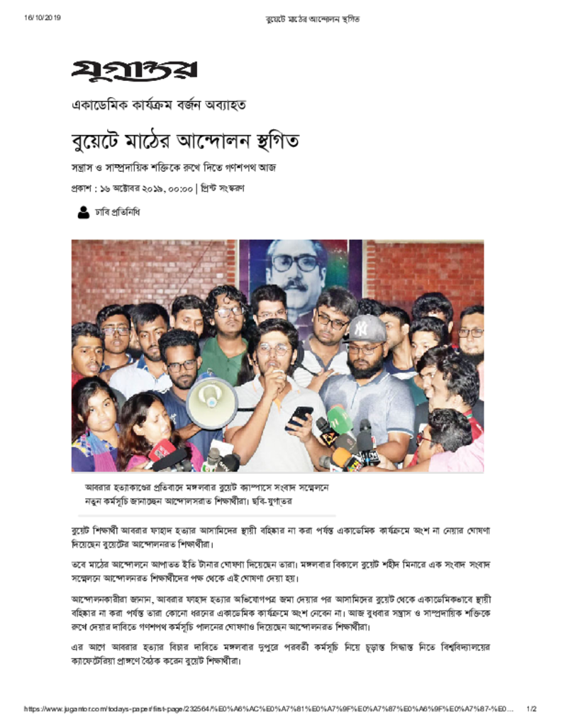 বুয়েটে মাঠের আন্দোলন স্থগিত
