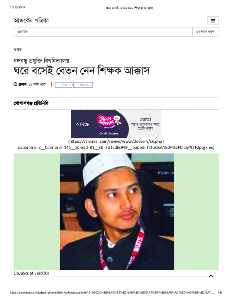 ঘরে বসেই বেতন নেন শিক্ষক আক্কাস Published on Newspaper দৈনিক সমকাল Category Science Education Download