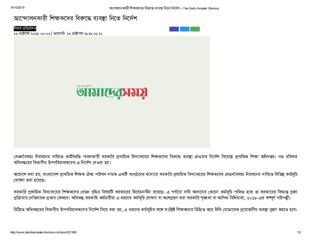 আন্দোলনকারী শিক্ষকদের বিরুদ্ধে ব্যবস্থা নিতে নির্দেশ – The Daily Amader Shomoy Published on Newspaper দৈনিক আমাদের সময় Category Educational Ministry / Departments Education Ministry / Division / Directorate Download