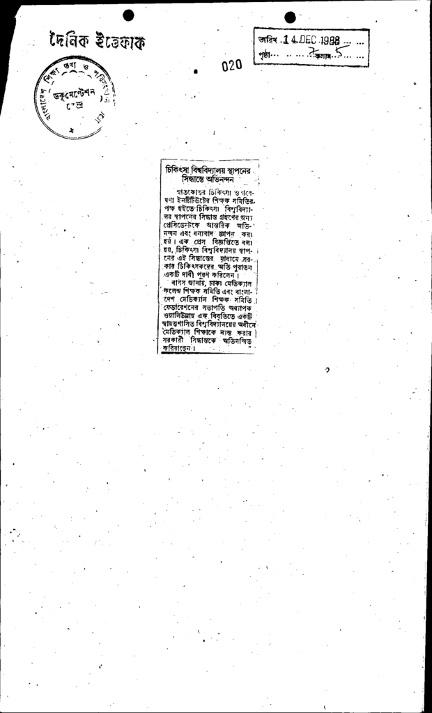 চিকিৎসা বিশ্ববিদ্যালয় স্থাপনের সিদ্ধান্তে অভিনন্দন Published on Newspaper দৈনিক ইত্তেফাক Category Professional Education Professional Education Medical Download