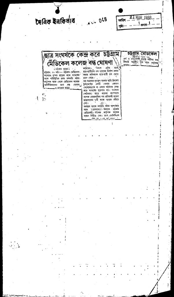 ছাত্র সংঘর্ষকে কেন্দ্র করে চট্রগ্রাম মেডিকেল কলেজ বন্ধ ঘোষণা Published on Newspaper দৈনিক ইনকিলাব Category Professional Education Professional Education Medical Download