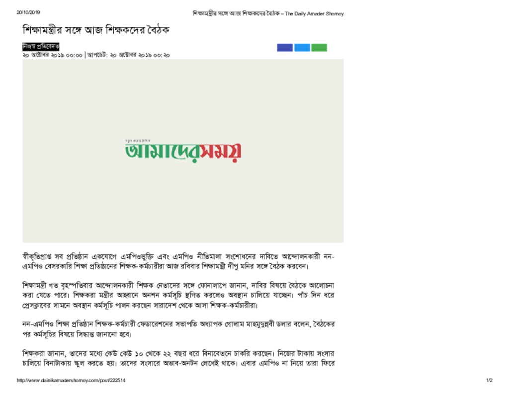 শিক্ষামন্ত্রীর সঙ্গে আজ শিক্ষকদের বৈঠক – The Daily Amader Shomoy