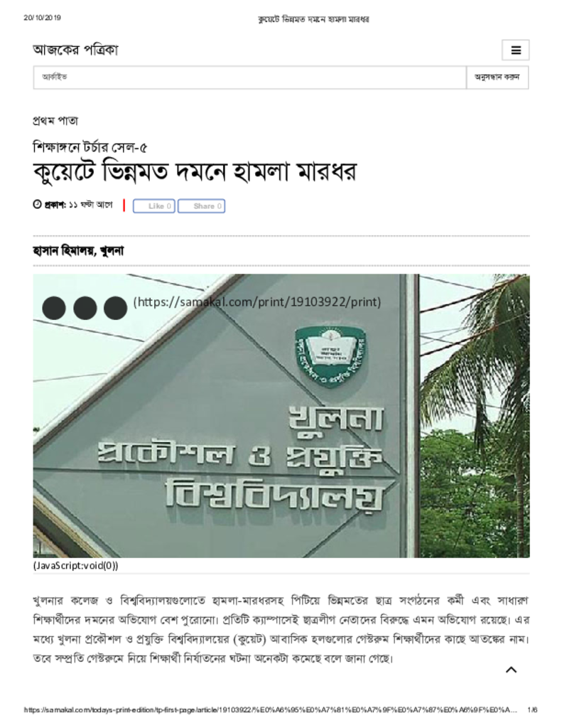 কুয়েটে ভিন্নমত দমনে হামলা মারধর