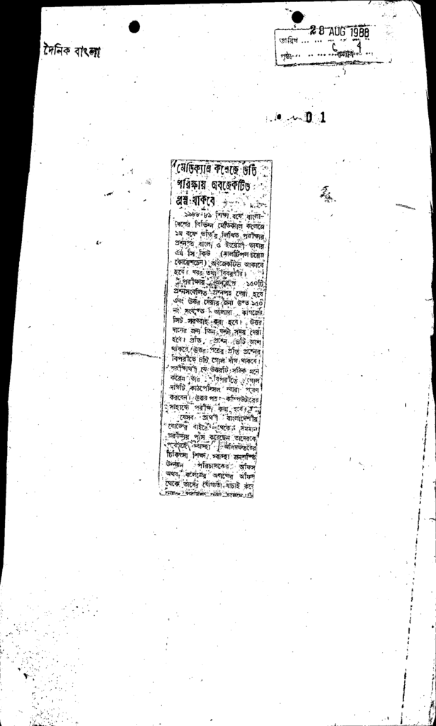 মেডিক্যাল কলেজে ভর্তি পরিষ্কার অবজেকটিভ প্রশ্ন থাকবে