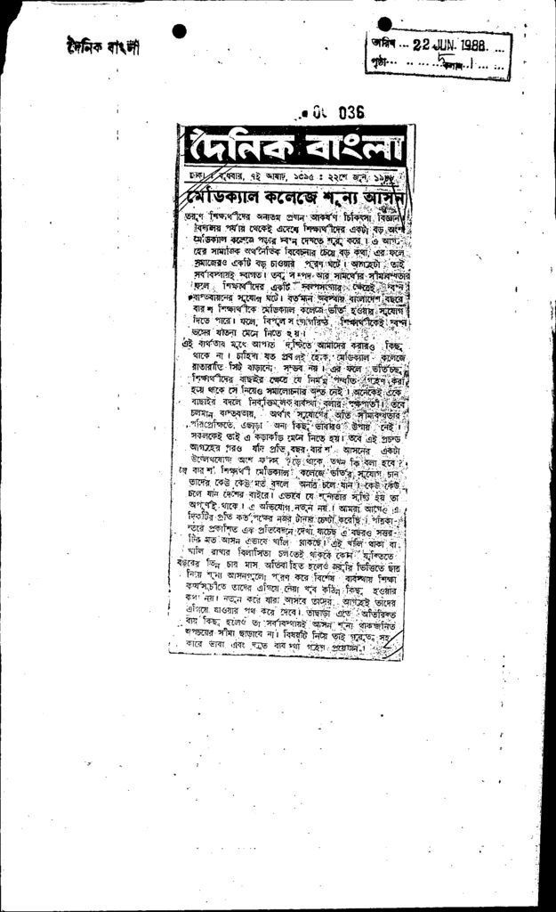 মেডিক্যাল কলেজে শূন্য আসন