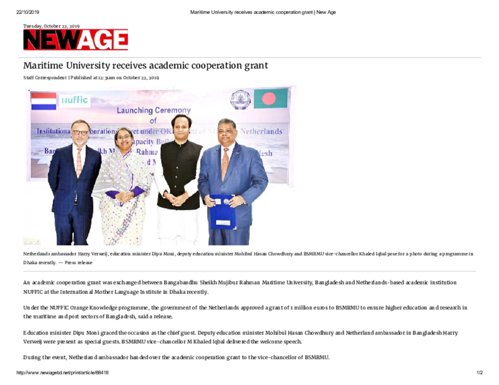 Maritime University receives academic cooperation grant _ New Age Published on Newspaper New Age Category Professional Education Professional Education Others Download