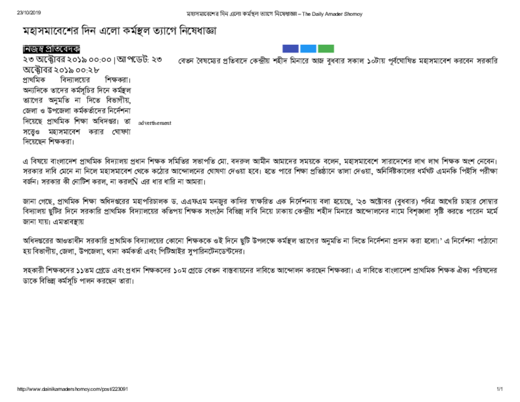 মহাসমাবেশের দিন এলো কর্মস্থল ত্যাগে নিষেধাজ্ঞা – The Daily Amader Shomoy Published on Newspaper দৈনিক আমাদের সময় Category Educational Ministry / Departments Education Ministry / Division / Directorate Download