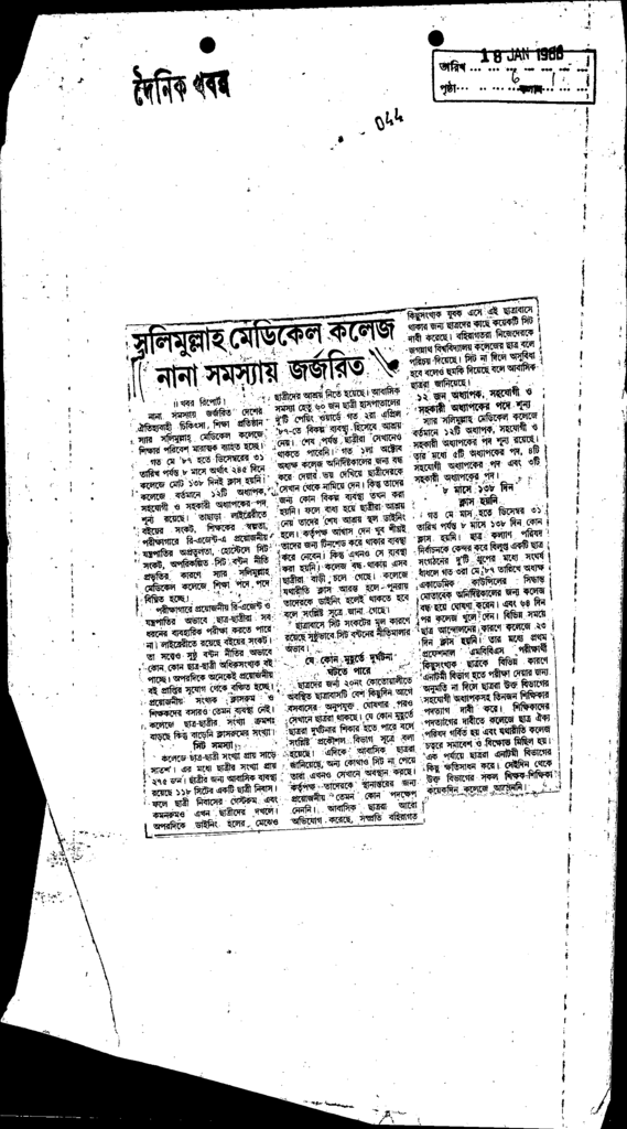 সলিমুল্লাহ মেডিকেল কলেজ নানা সমস্যায় জর্জরিত