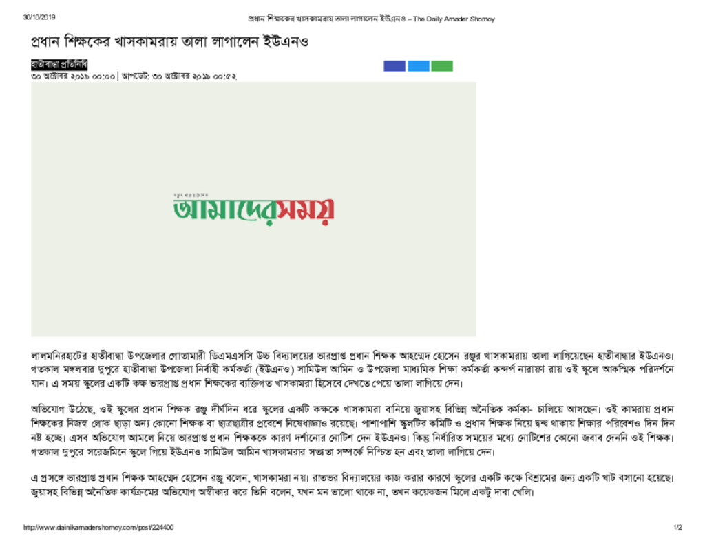 প্রধান শিক্ষকের খাসকামরায় তালা লাগালেন ইউএনও – The Daily Amader Shomoy