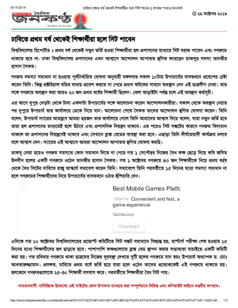 ঢাবিতে প্রথম বর্ষ থেকেই শিক্ষার্থীরা হলে সিট পাবেন __ শেষের পাতা __ জনকন্ঠ Published on Newspaper দৈনিক খবর Category General Education General Education Higher Education Public Download