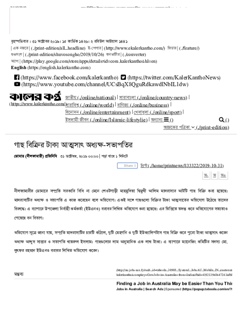 গাছ বিক্রির টাকা আত্মসাৎ অধ্যক্ষ-সভাপতির Published on Newspaper দৈনিক কালের কন্ঠ Category Madrasah Education Madrasah Education Alia Download