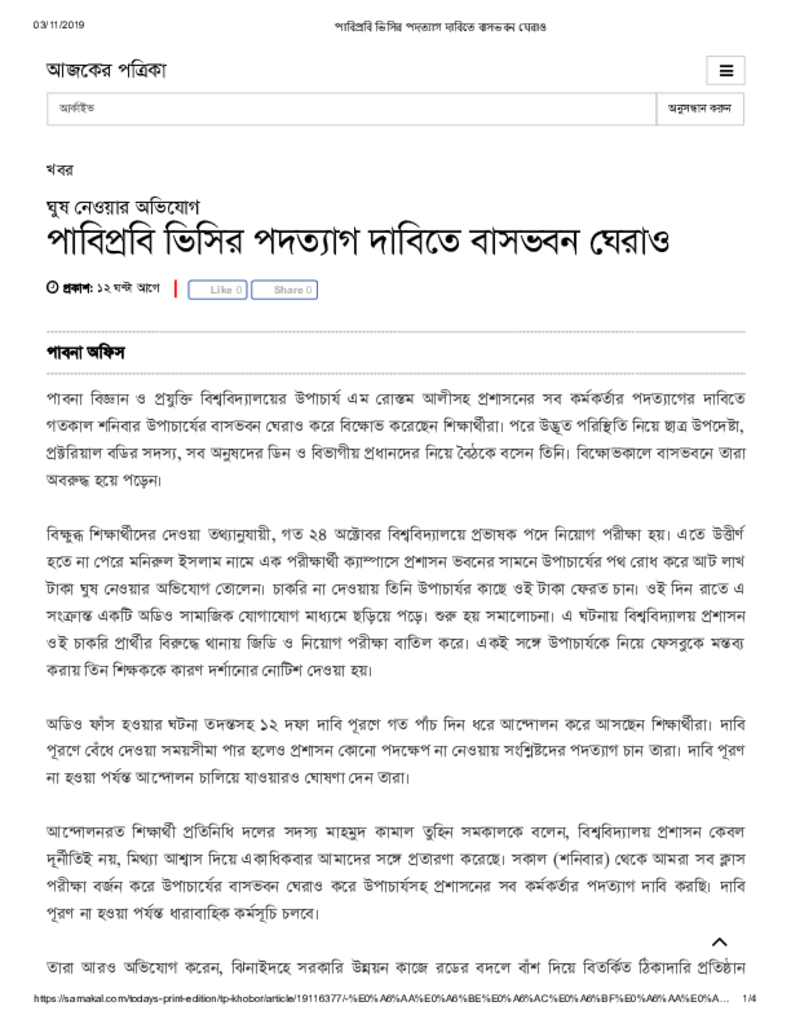 পাবিপ্রবি ভিসির পদত্যাগ দাবিতে বাসভবন ঘেরাও Published on Newspaper দৈনিক সমকাল Category Science Education Download