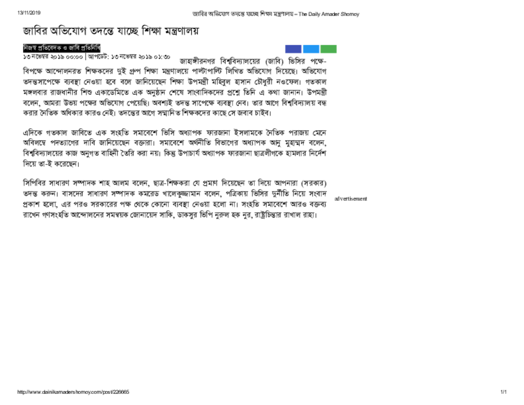জাবির অভিযোগ তদন্তে যাচ্ছে শিক্ষা মন্ত্রণালয় – The Daily Amader Shomoy Published on Newspaper দৈনিক আমাদের সময় Category Educational Ministry / Departments Download