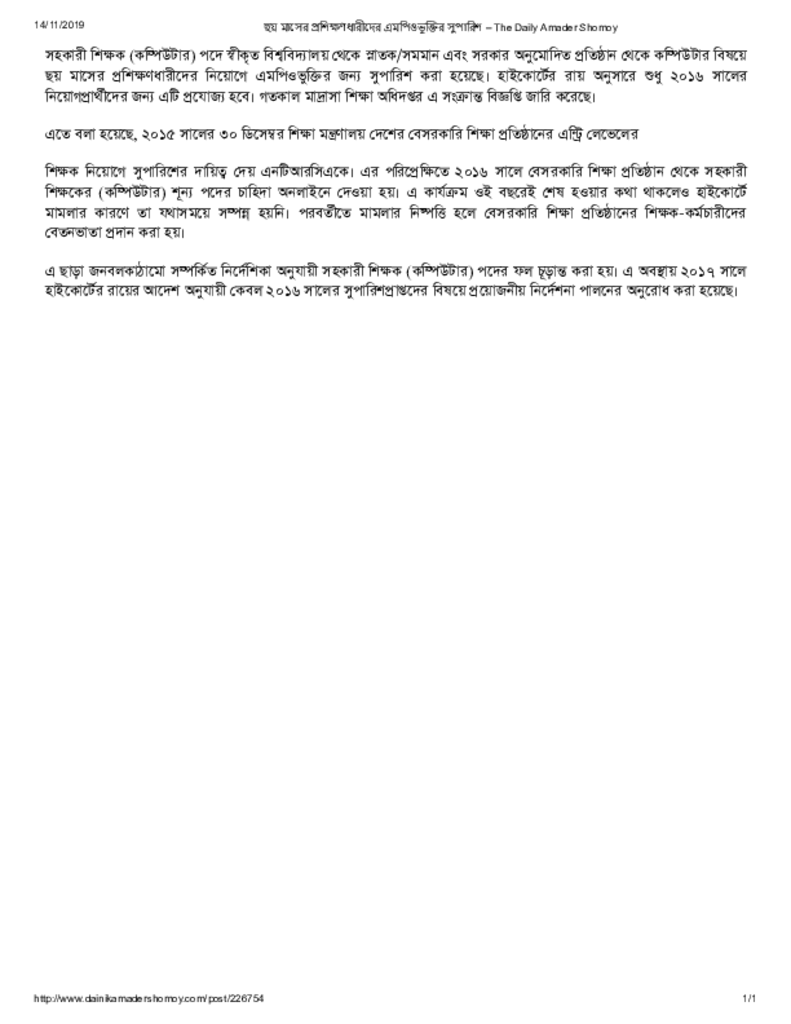ছয় মাসের প্রশিক্ষণধারীদের এমপিওভুক্তির সুপারিশ – The Daily Amader Shomoy Published on Newspaper দৈনিক আমাদের সময় Category Personal Opinion / Discussion / Commentary Download