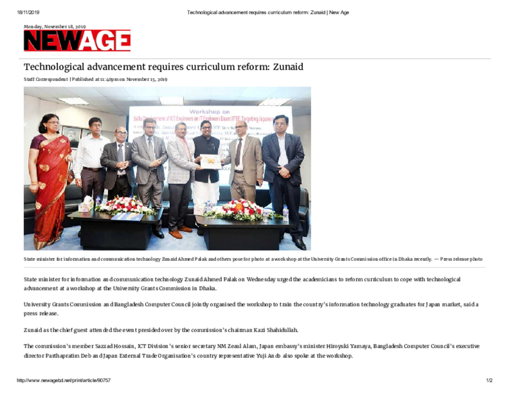 Technological advancement requires curriculum reform_ Zunaid _ New Age Published on Newspaper New Age Category ICT Education Download