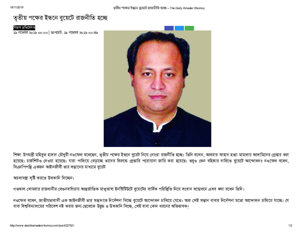 তৃতীয় পক্ষের ইন্ধনে বুয়েটে রাজনীতি হচ্ছে – The Daily Amader Shomoy