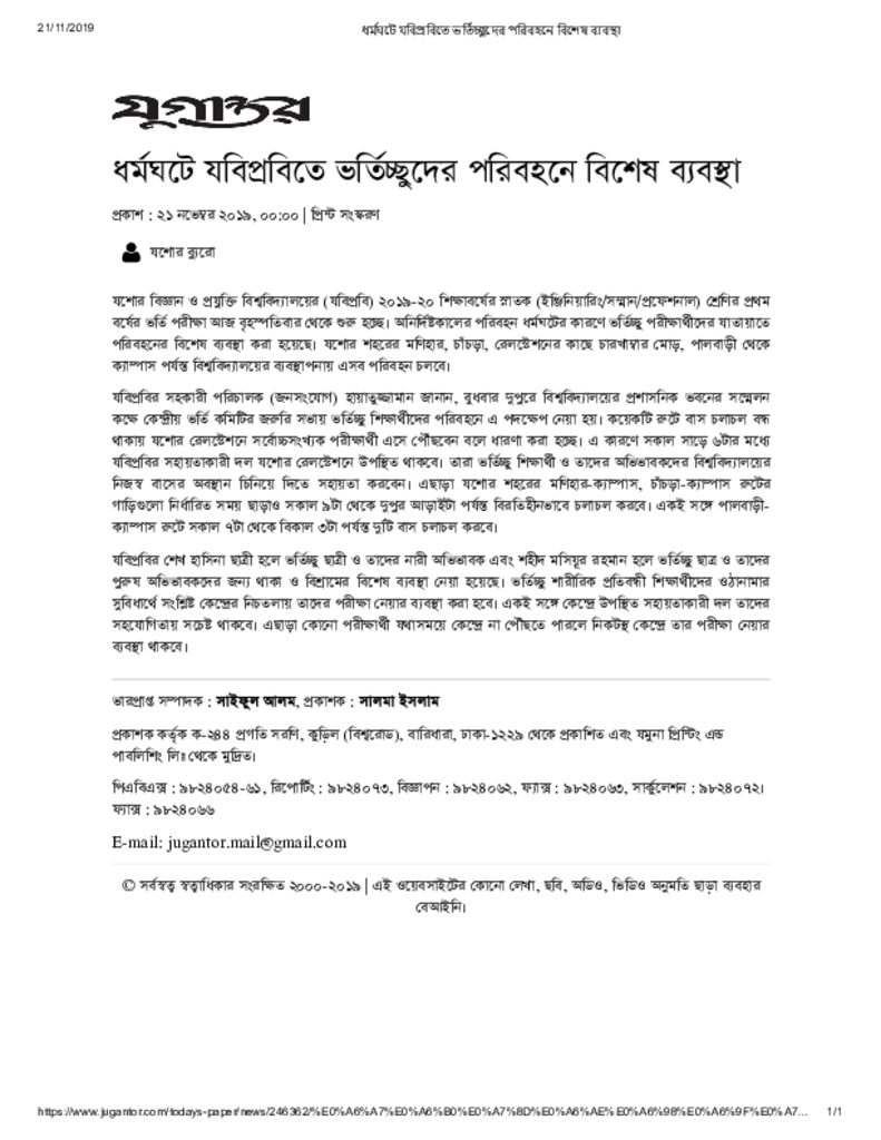 ধর্মঘটে যবিপ্রবিতে ভর্তিচ্ছুদের পরিবহনে বিশেষ ব্যবস্থা Published on Newspaper দৈনিক ইত্তেফাক Category Science Education Download