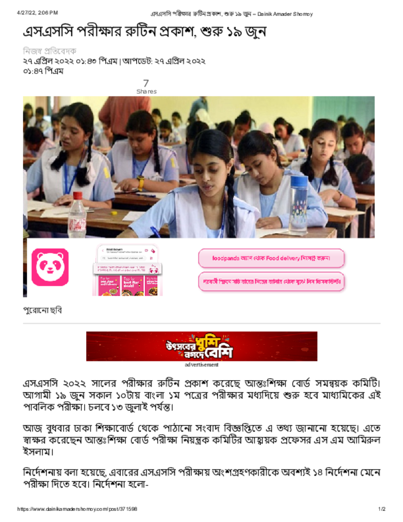 এসএসসি পরীক্ষার রুটিন প্রকাশ, শুরু ১৯ জুন – Dainik Amader Shomoy Published on 27 April 2022 Newspaper দৈনিক আমাদের সময় Category Public Examination General Education Download