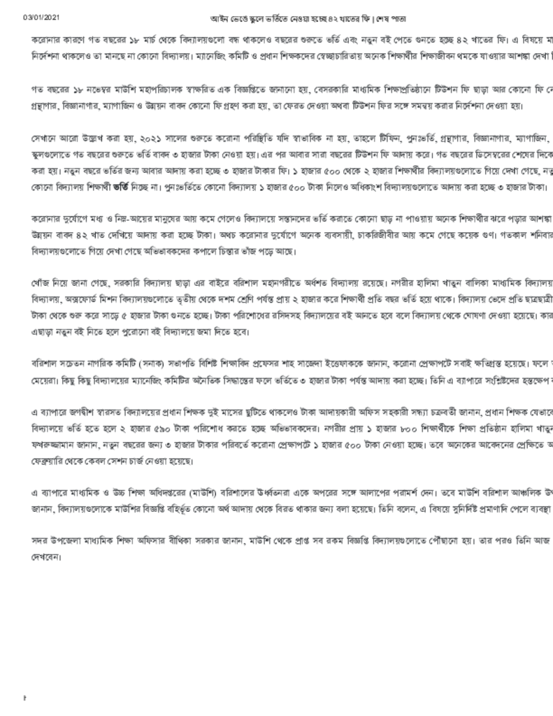 আইন ভেঙে স্কুলে ভর্তিতে নেওয়া হচ্ছে ৪২ খাতের ফি _ শেষ পাতা Published on 03 January 2021 Newspaper দৈনিক ইত্তেফাক Category General Education Division Secondary and Higher Education Education Ministry / Division / Directorate General Education Download