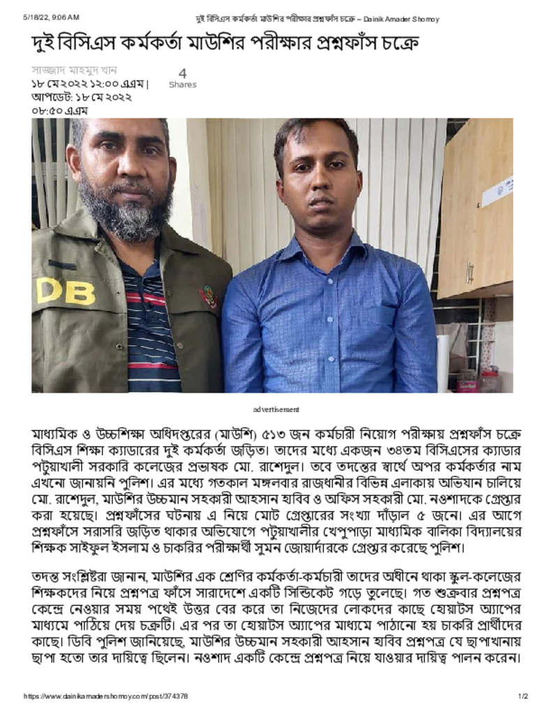 দুই বিসিএস কর্মকর্তা মাউশির পরীক্ষার প্রশ্নফাঁস চক্রে – Dainik Amader Shomoy Published on 18 May 2022 Newspaper দৈনিক আমাদের সময় Category Others Download