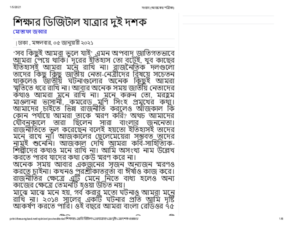 শিক্ষার ডিজিটাল যাত্রার দুই দশক Published on 05 January 2021 Newspaper দৈনিক সংবাদ Category ICT Education Download